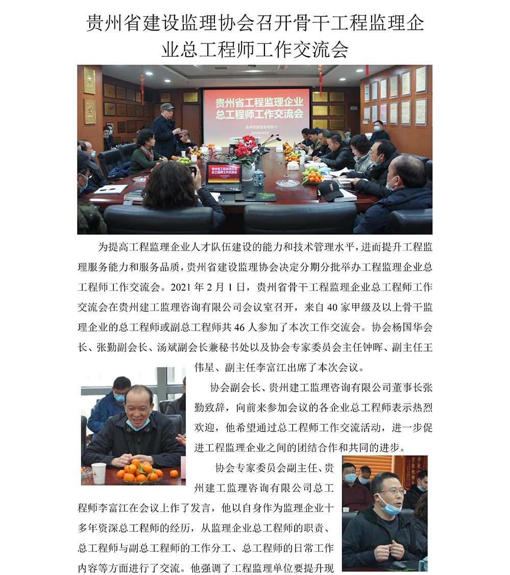 贵州省建设监理协会召开骨干工程监理企业总工程师工作交流会